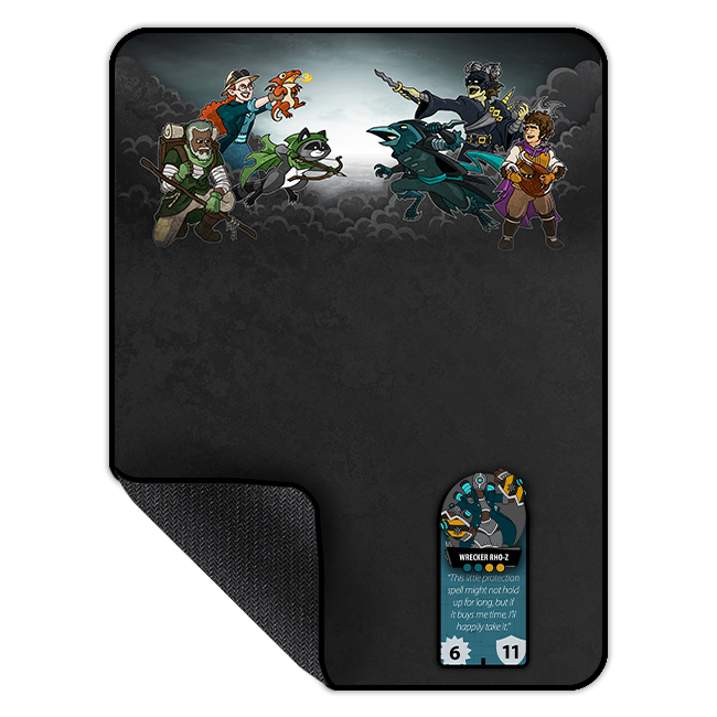 Mount your pins in style! Add a neoprene playmat illustrated with Worn Wanderers art.