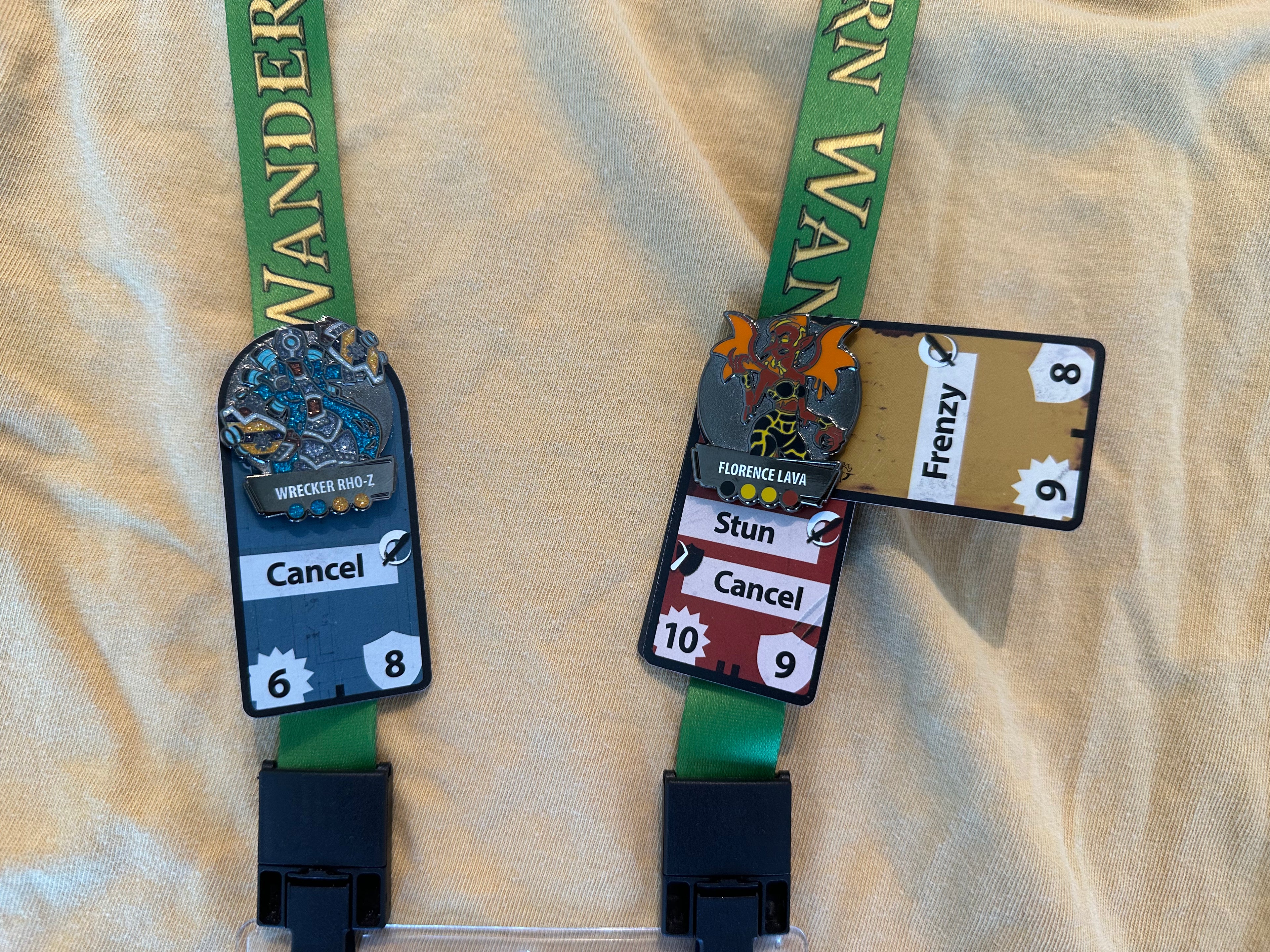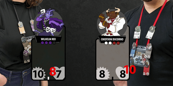 Each character who is hit takes a wound, rotating their top card away to reveal their next one.
